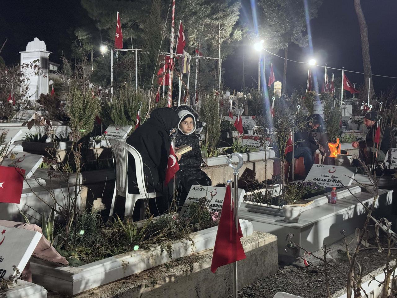Gecenin karanlığına rağmen Kahramanmaraş Kapıçam Şehir Mezarlığı’na giden vatandaşlar yakınlarının kabirlerini sulayıp çiçek bıraktı.