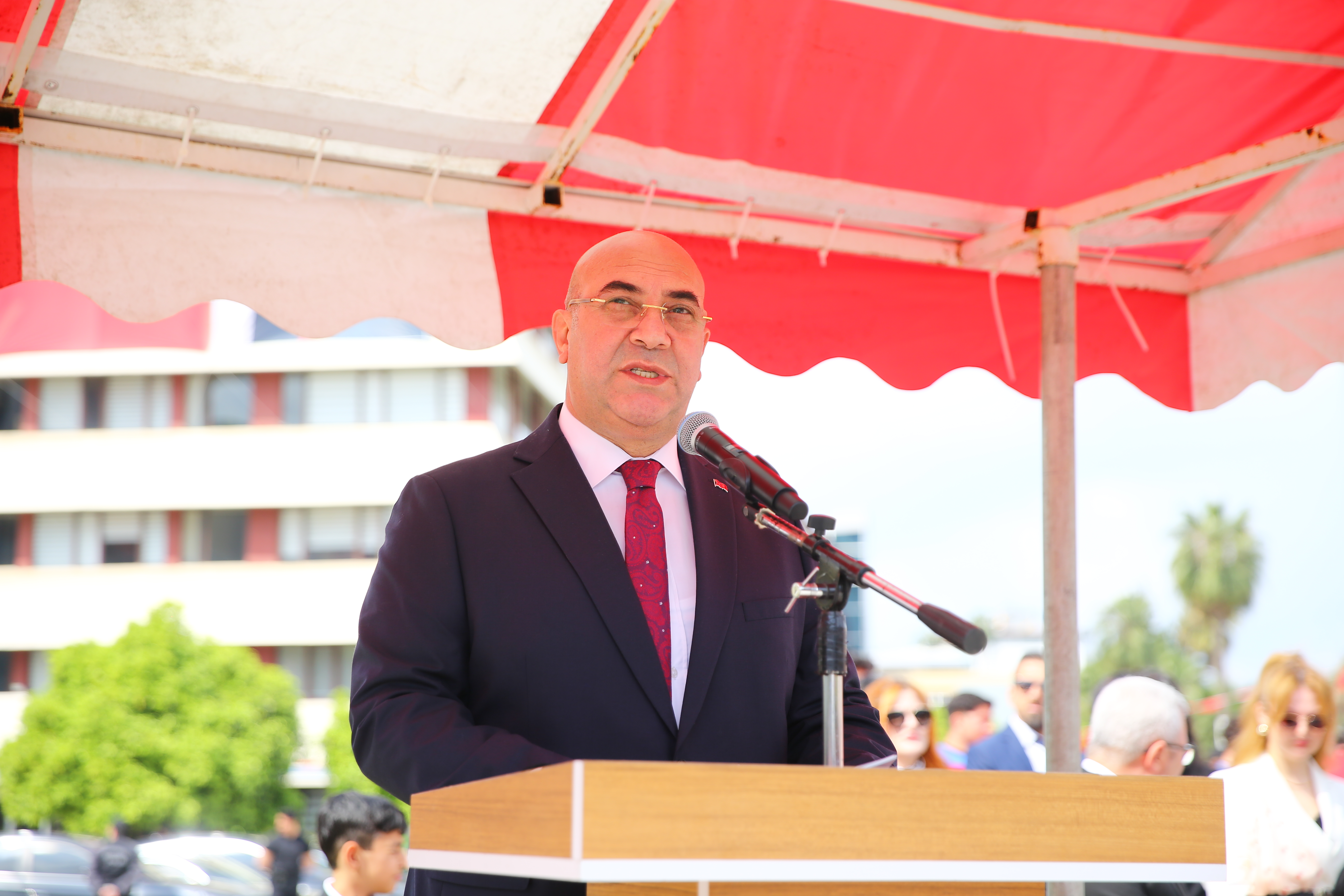 Burada konuşan İl Milli Eğitim Müdürü Harun Tüysüz, Şanlıurfa ve Kahramanmaraş'ta yaşanan olaylardan dolayı üzüntülü olduklarını belirtti.