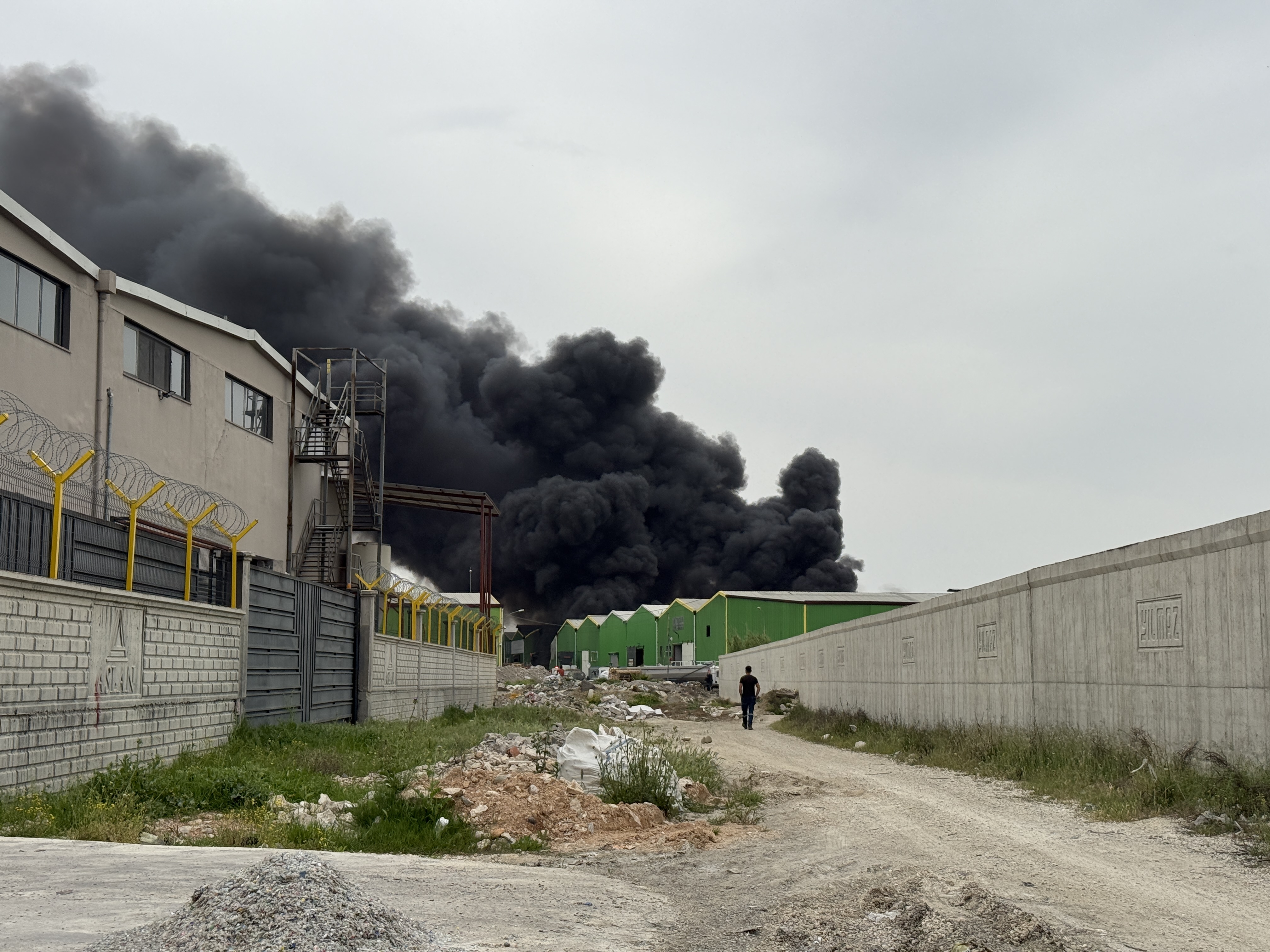 Sarıhamzalı Mahallesi'ndeki geri dönüşüm tesisinde henüz belirlenemeyen nedenle yangın çıktı.