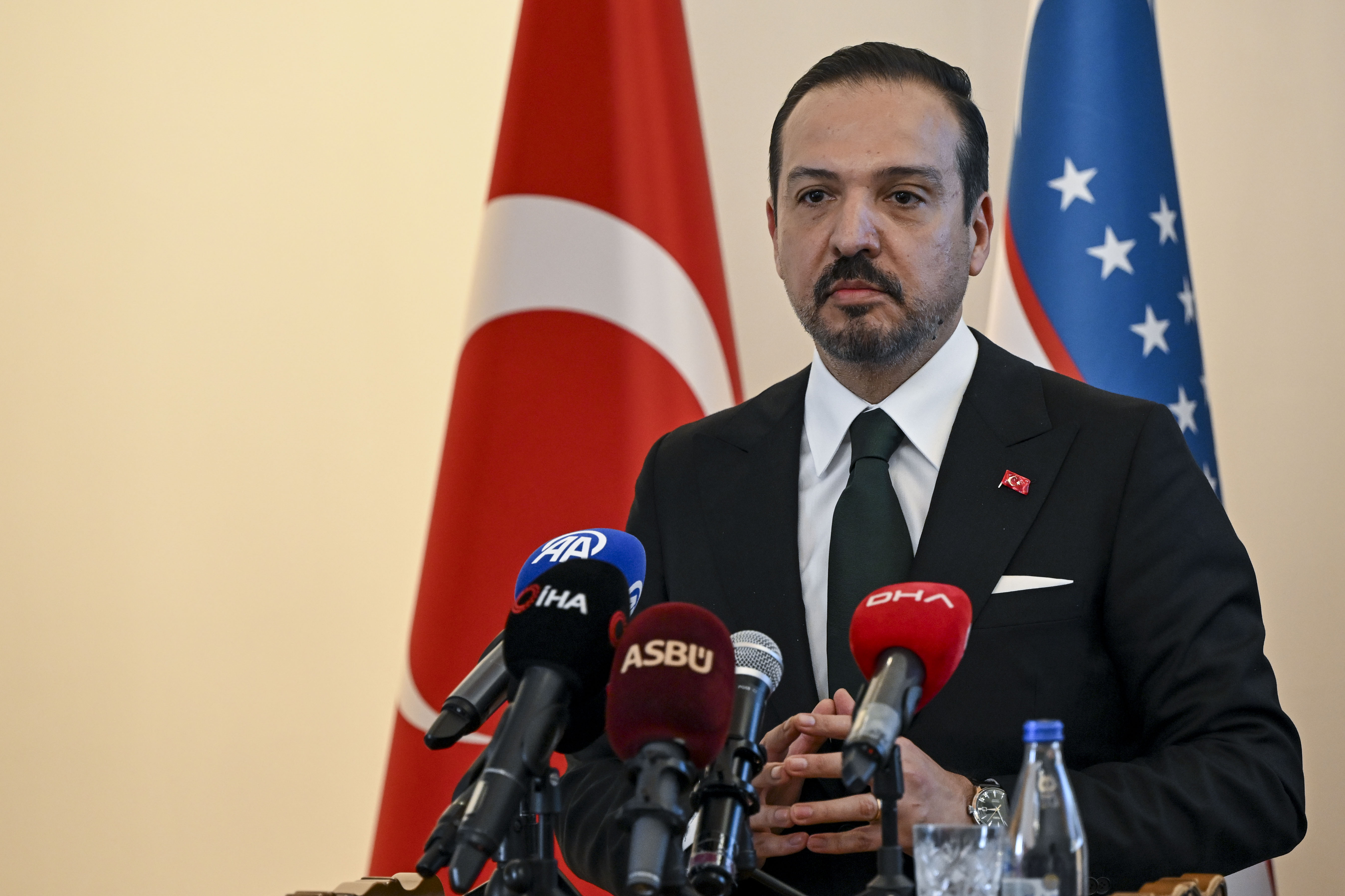 2014'te 1,2 milyar dolar olan dış ticaretimiz bugün 5 milyar dolara geldi. İnşallah liderlerimizin 10 milyar dolarlık ticaret hedefine ulaşmamız imkansız değil. Bunu hep birlikte başaracağımıza yürekten inanıyorum. Sayın Özbekistan Cumhurbaşkanı Mirziyoyev'in göreve gelmesinden itibaren yeni bir yükseliş dönemi başladı. Bu 8 yıllık dönemde Türkiye-Özbekistan ilişkileri hiç olmadığı kadar, çok başarılı bir seviyeye, noktaya ulaştı.”