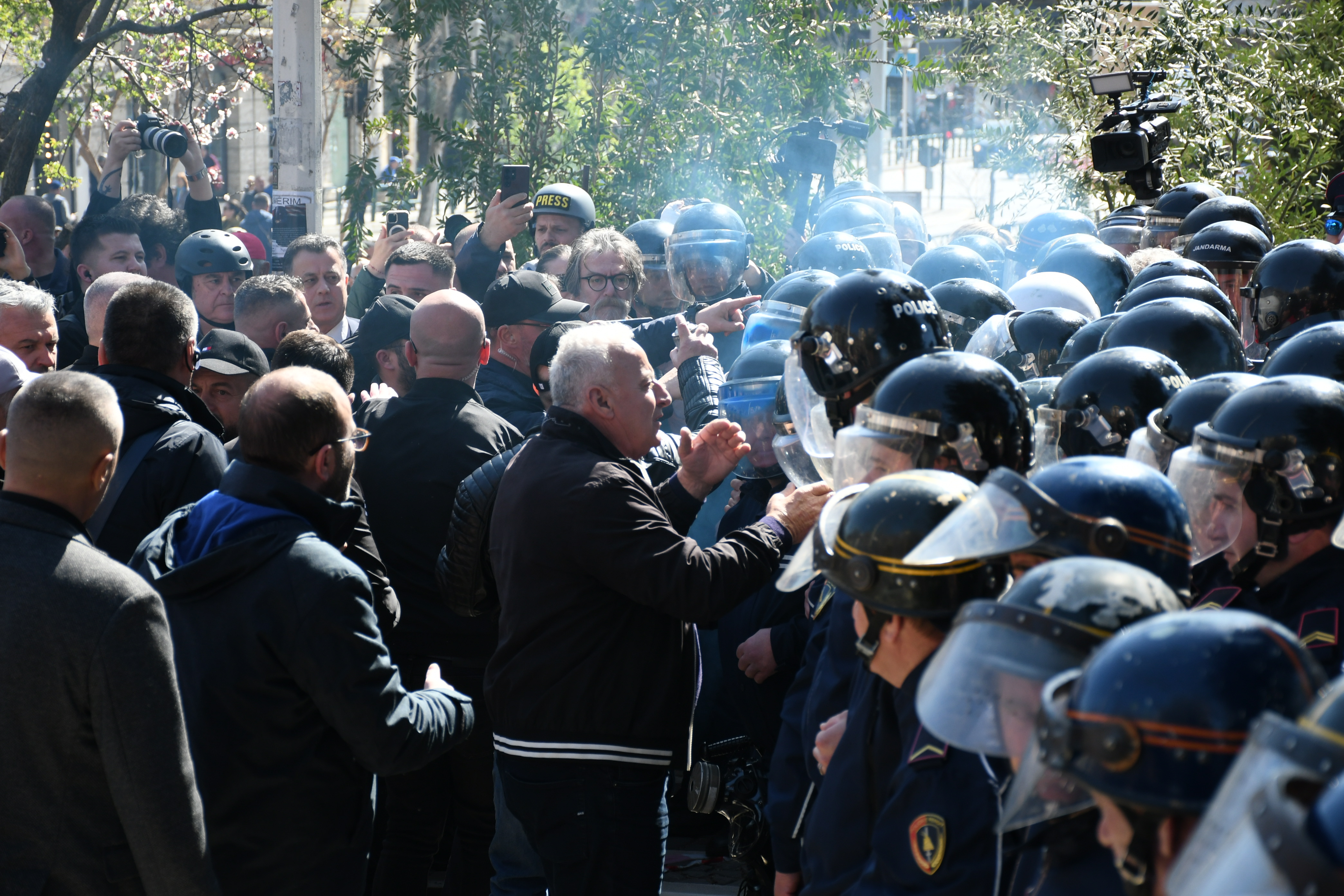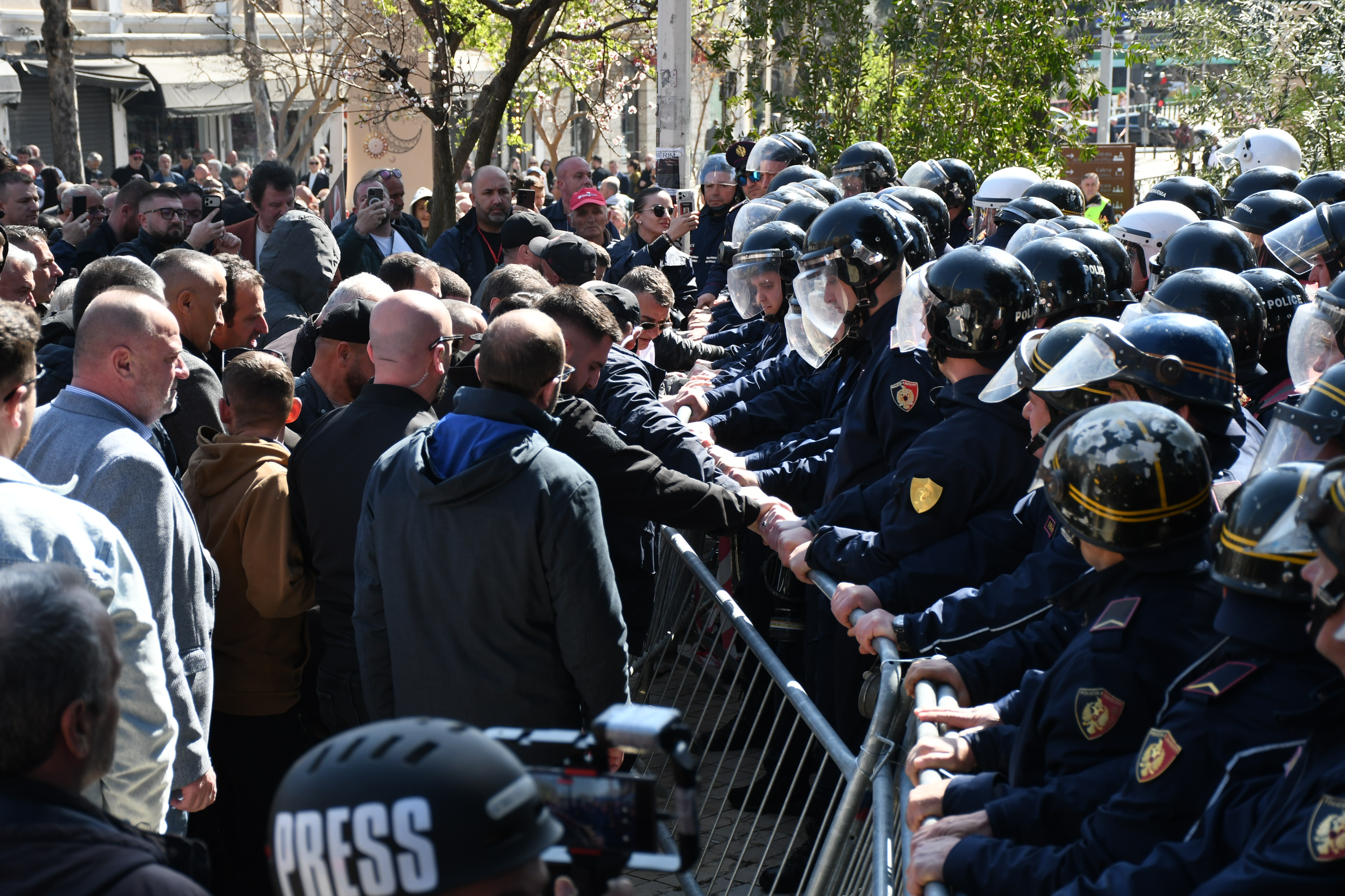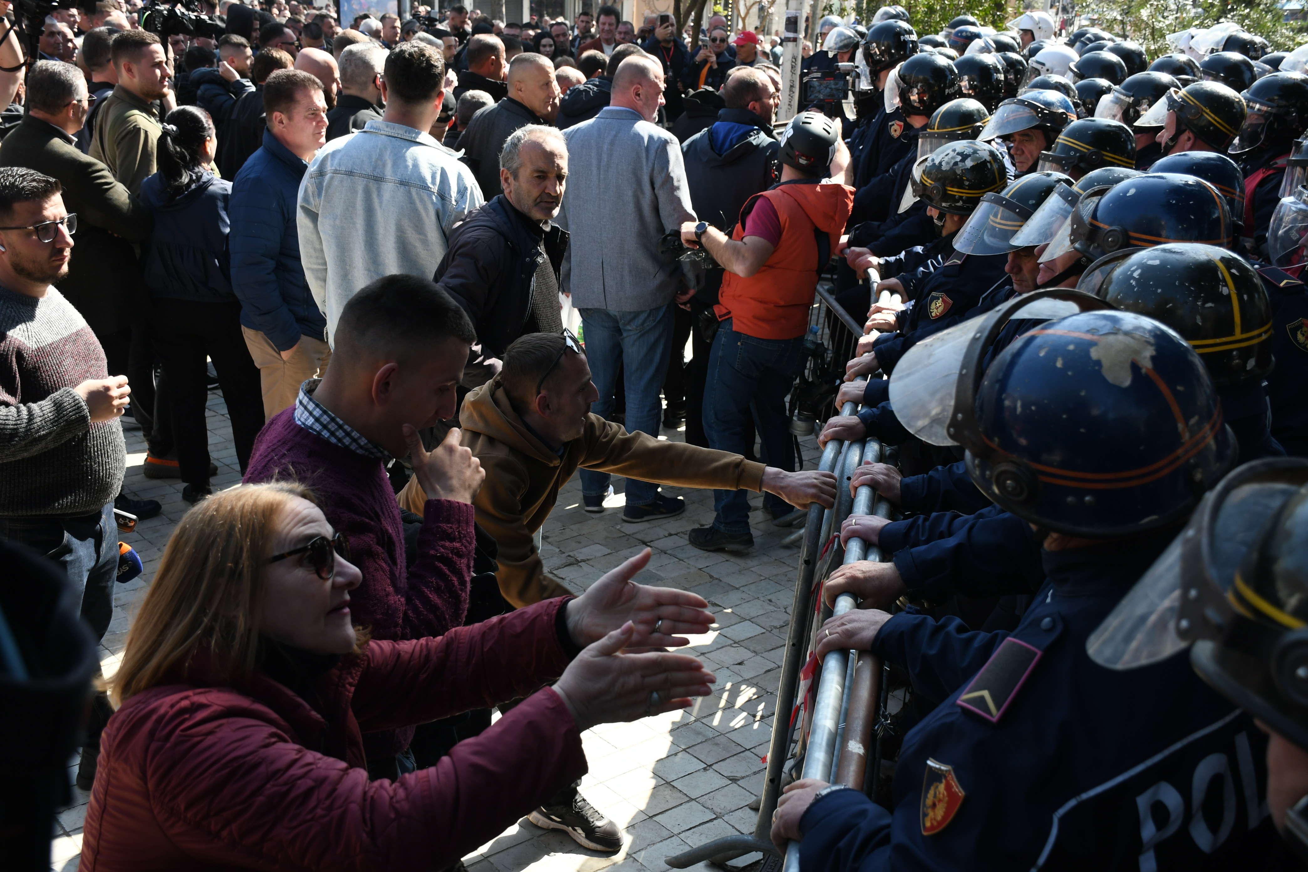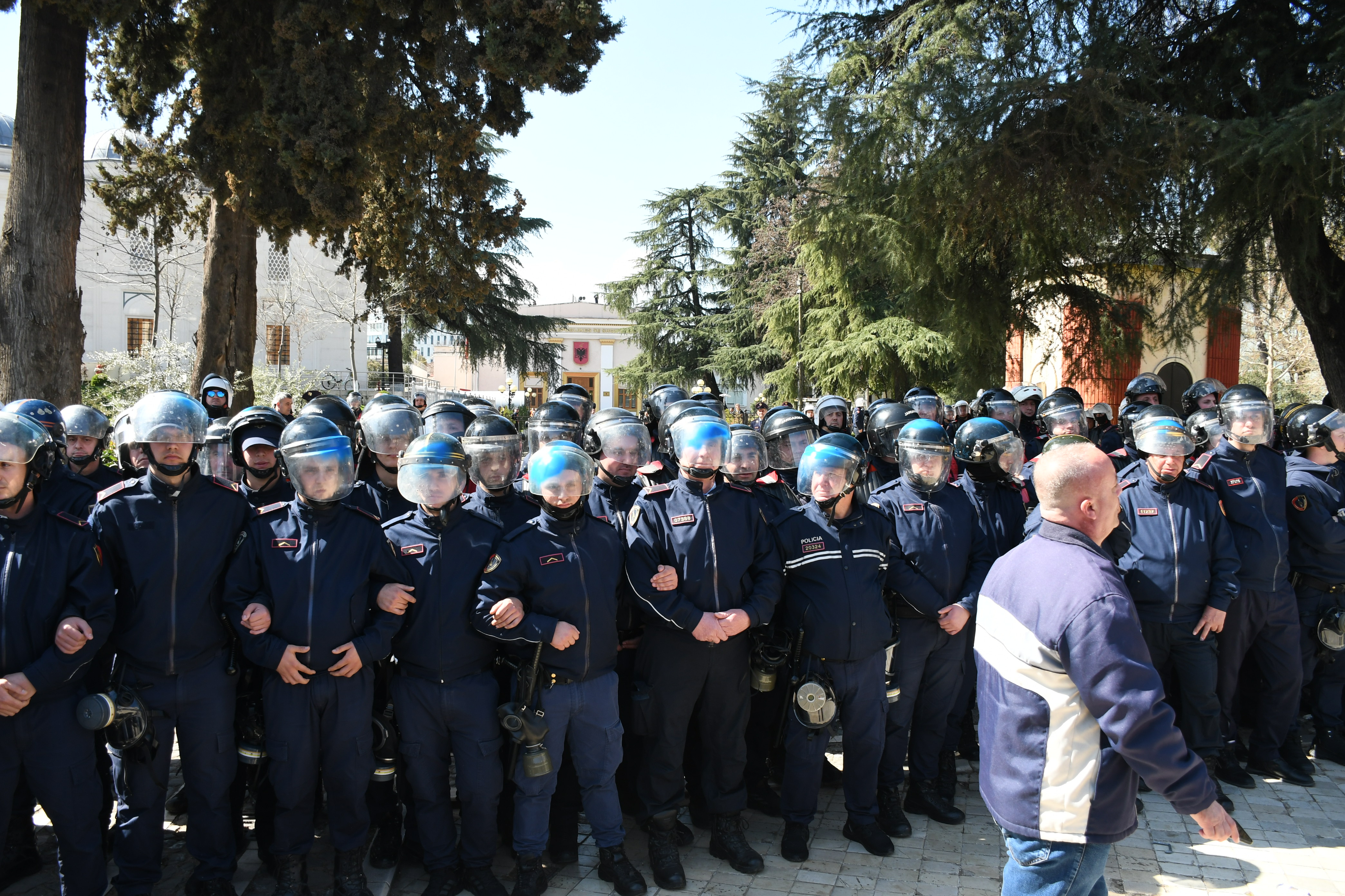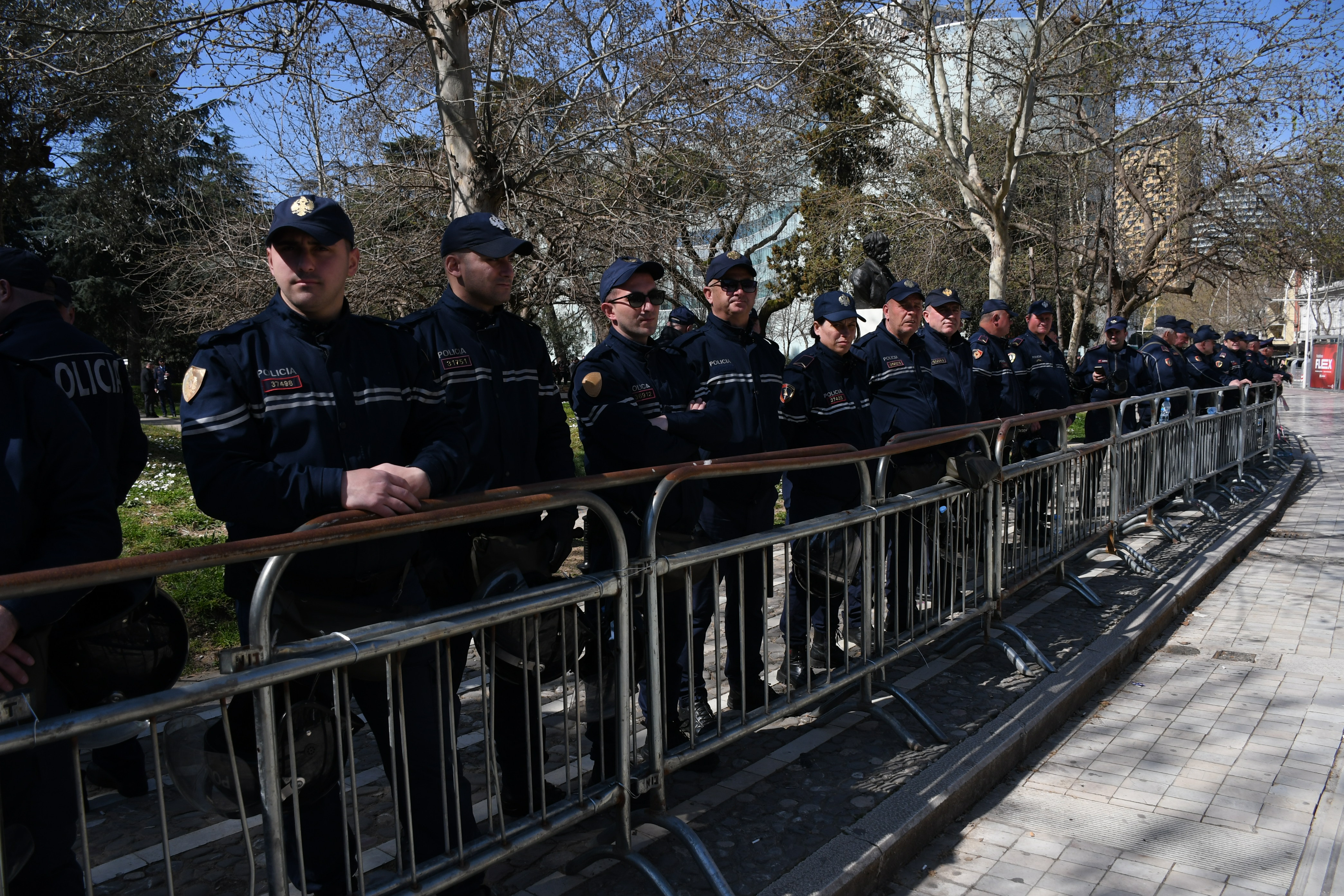 Olaysız sona eren gösteride yüzlerce polis görev aldı, Tiran'da birçok yol trafiğe kapatıldı.