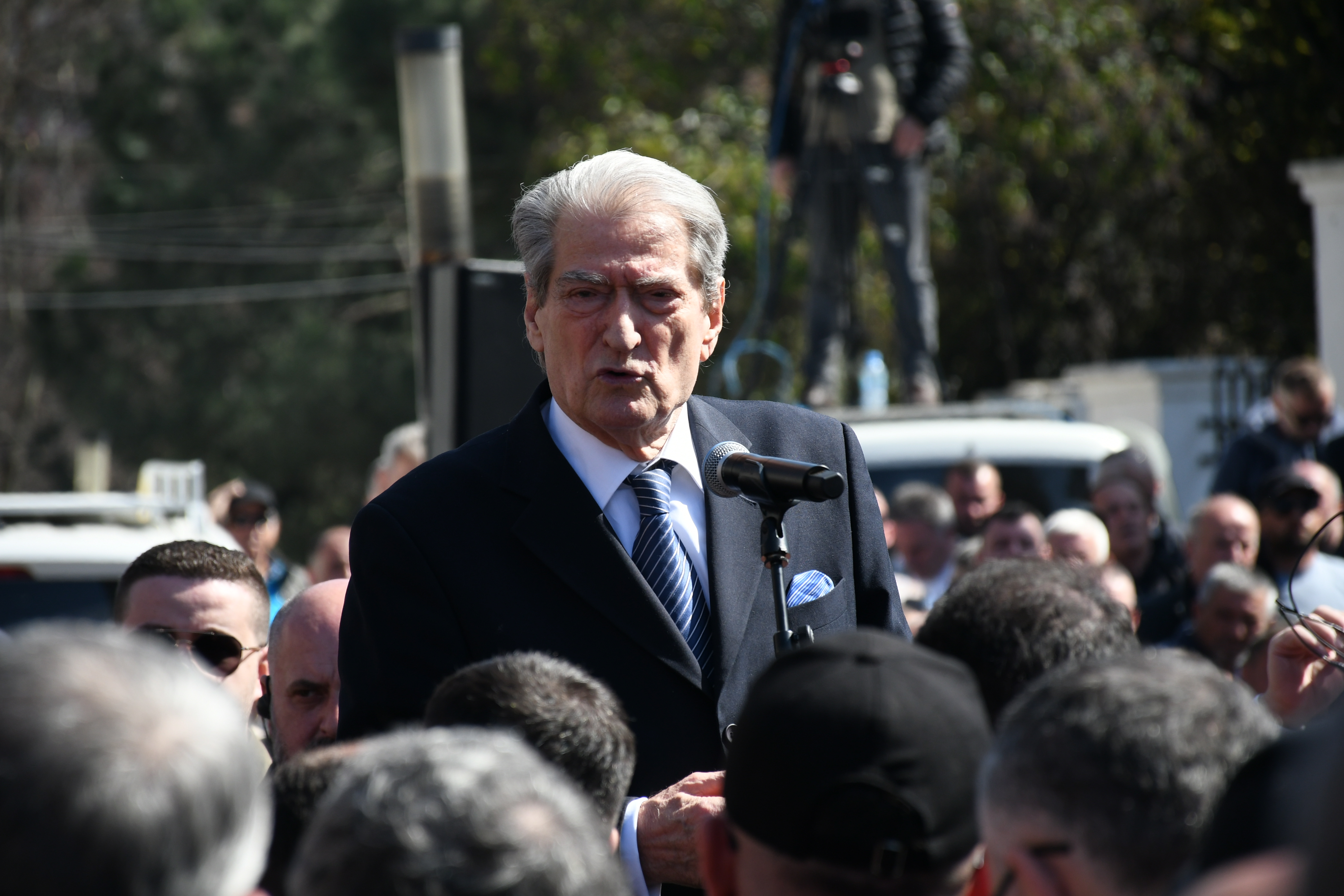 Gösteriye katılan PD Genel Başkanı Sali Berisha, “Anayasa'yı ve insan onurunu savunmak” adına toplandıklarını dile getirdi.