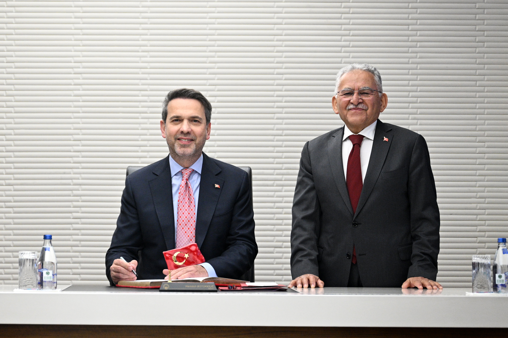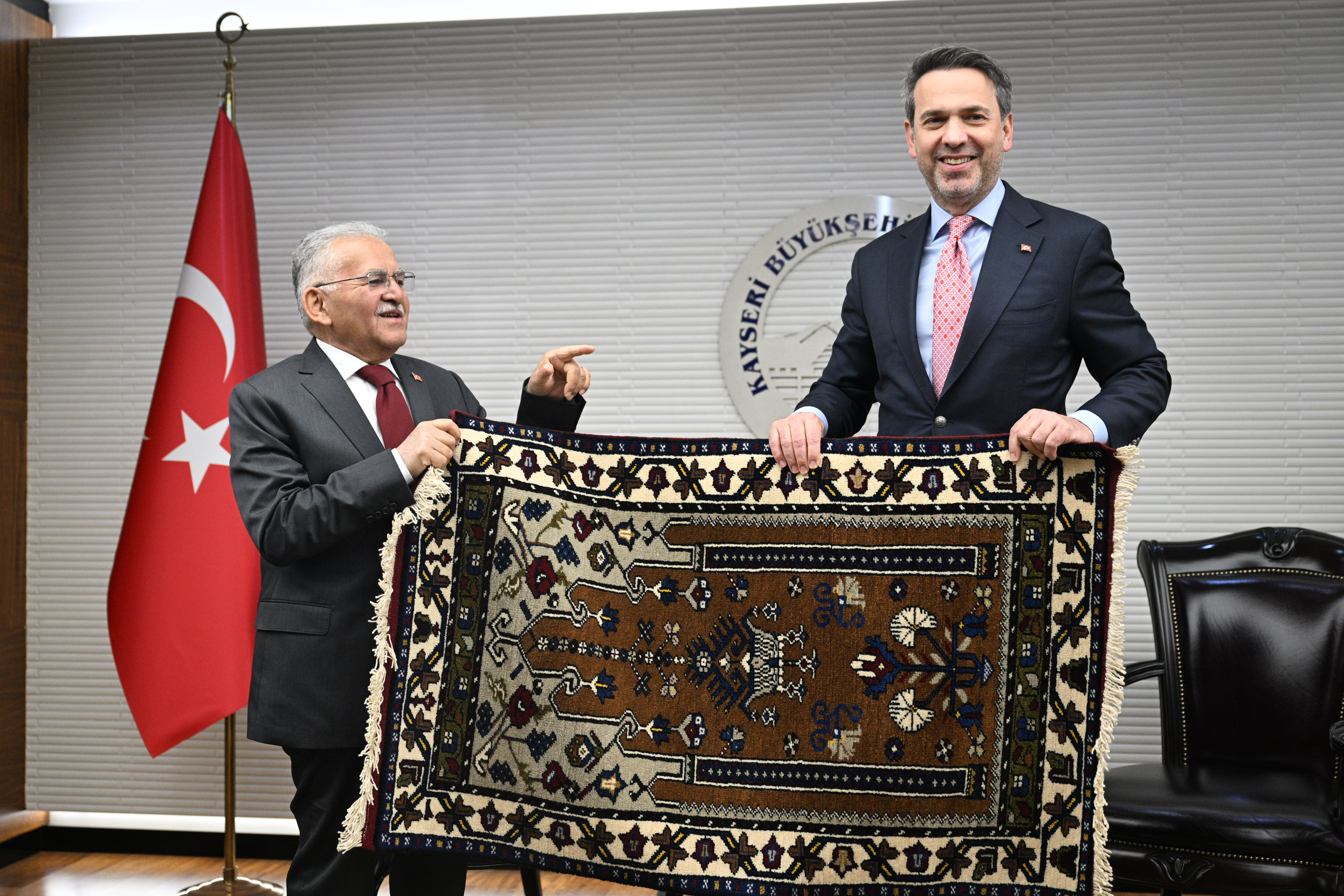 Büyükşehir Belediye Başkanı Memduh Büyükkılıç ile de makamında bir araya gelen Bayraktar, Kayseri'nin Türkiye'nin göz bebeği şehirlerden biri olduğunu ve kentin her alanda ülkeye katkı yaptığını ifade etti.
