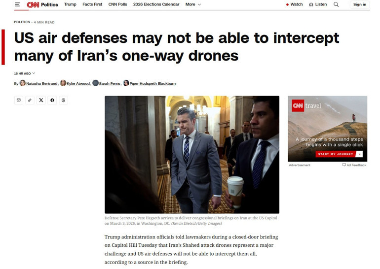 Trump yönetimi yetkilileri, Salı günü Capitol Hill’de kapalı kapılar ardında düzenlenen gizli bir toplantıda milletvekillerine, İran’ın Shahed insansız hava araçlarının büyük bir zorluk oluşturduğunu ve ABD hava savunma sistemlerinin bunların tamamını engelleyemeyeceğini itiraf etti.