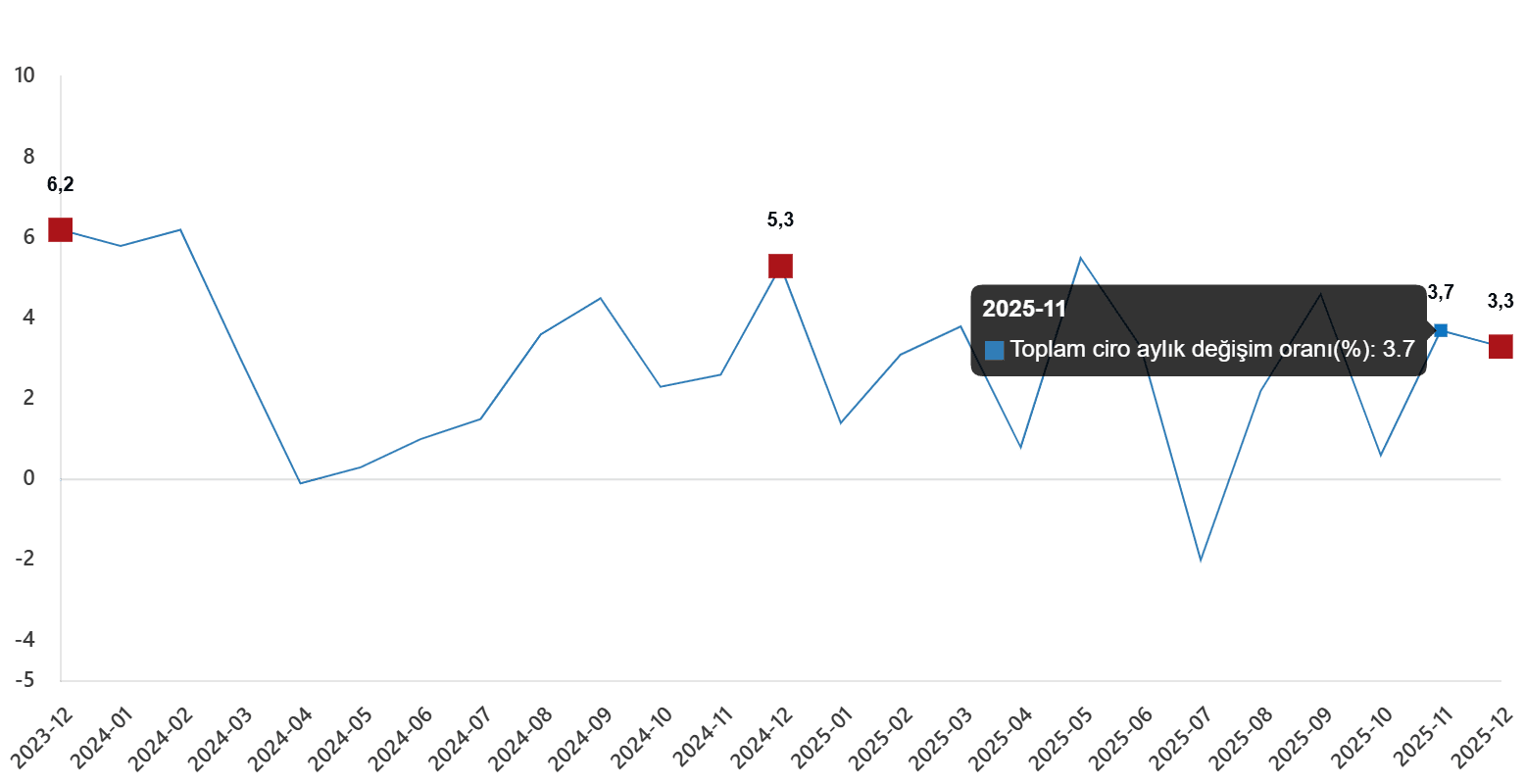 Toplam ciro aylık değişim oranı(%), Aralık 2025