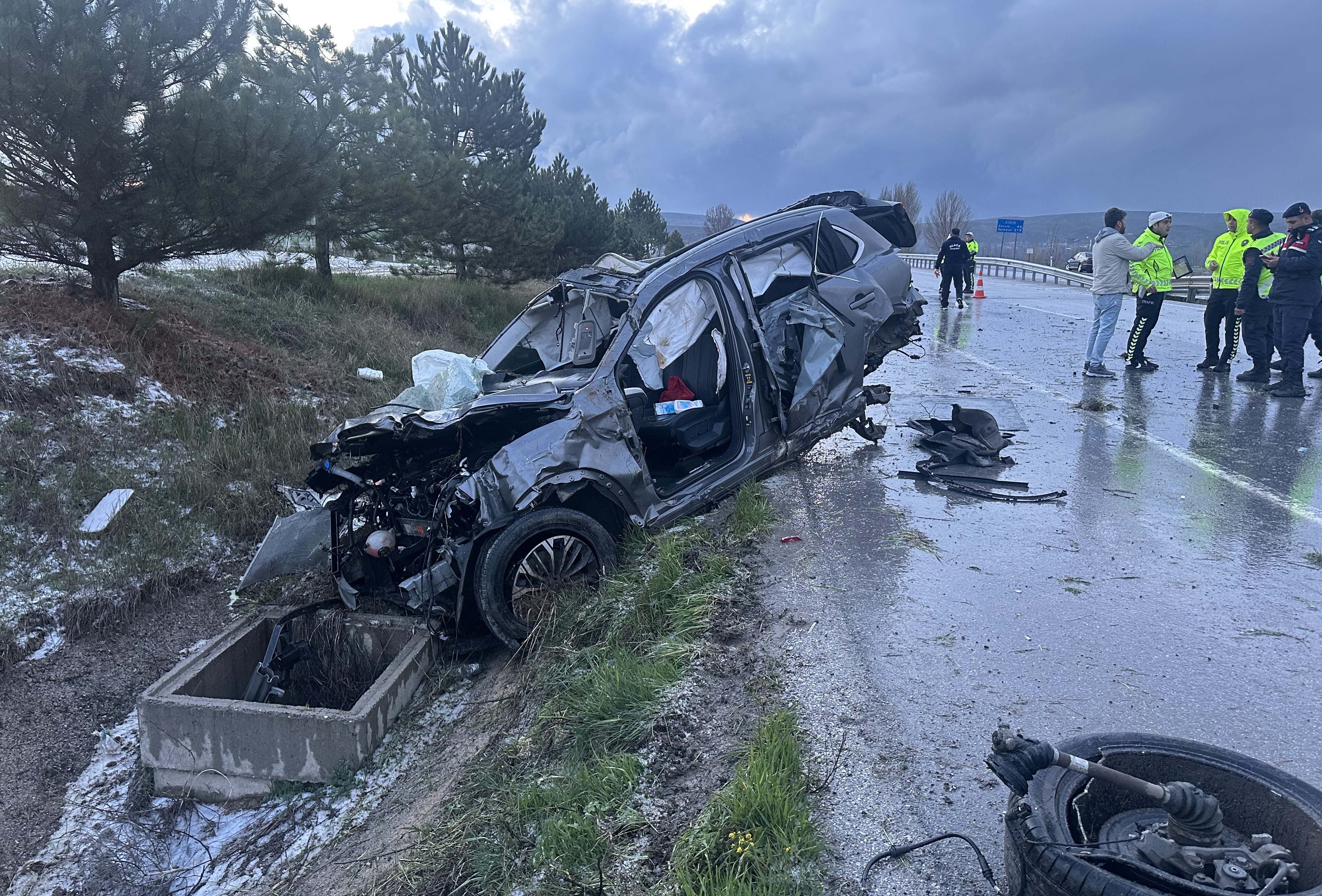 Ardından İsmail Sak'ın (48) kullandığı 19 TGG 019 plakalı otomobil de kaza yerinden yaklaşık 100 metre ileride devrildi.