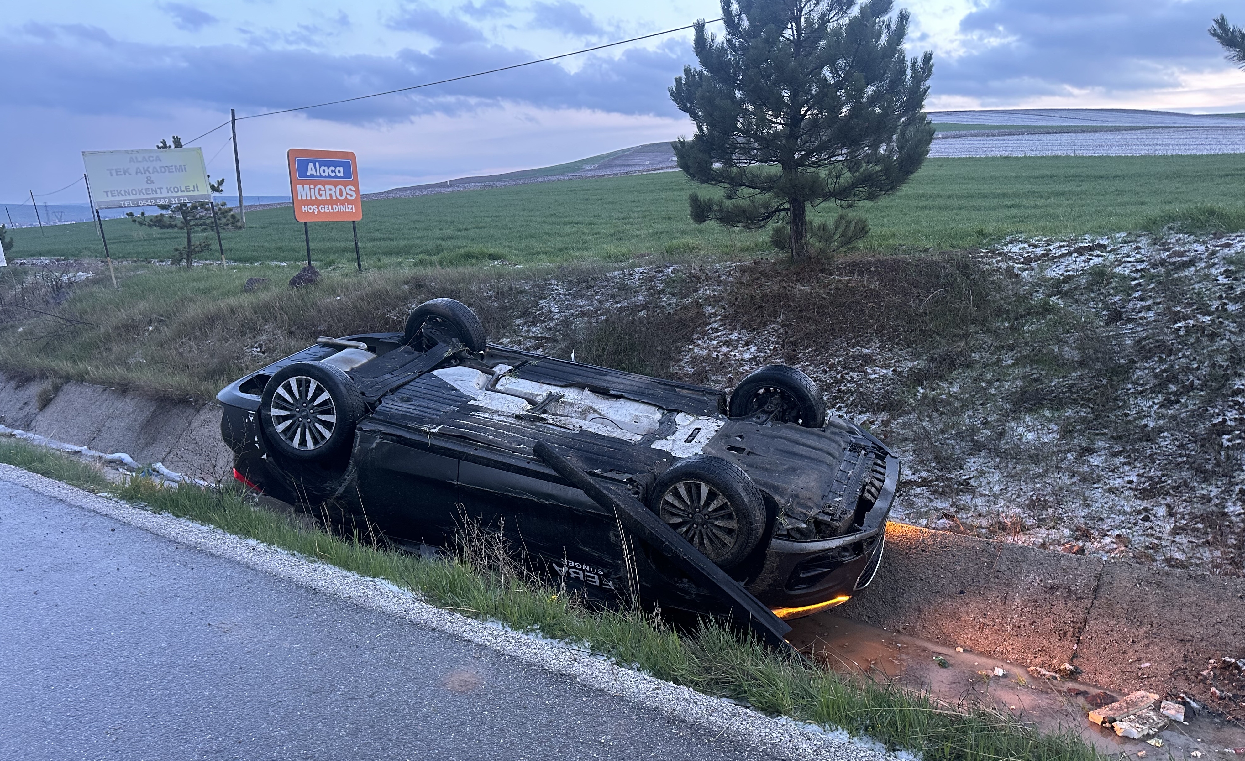 M.E. (44) idaresindeki 38 AJK 486 plakalı otomobil, Çorum-Yozgat kara yolu İbrahim köyü yakınlarında yol kenarına devrildi.