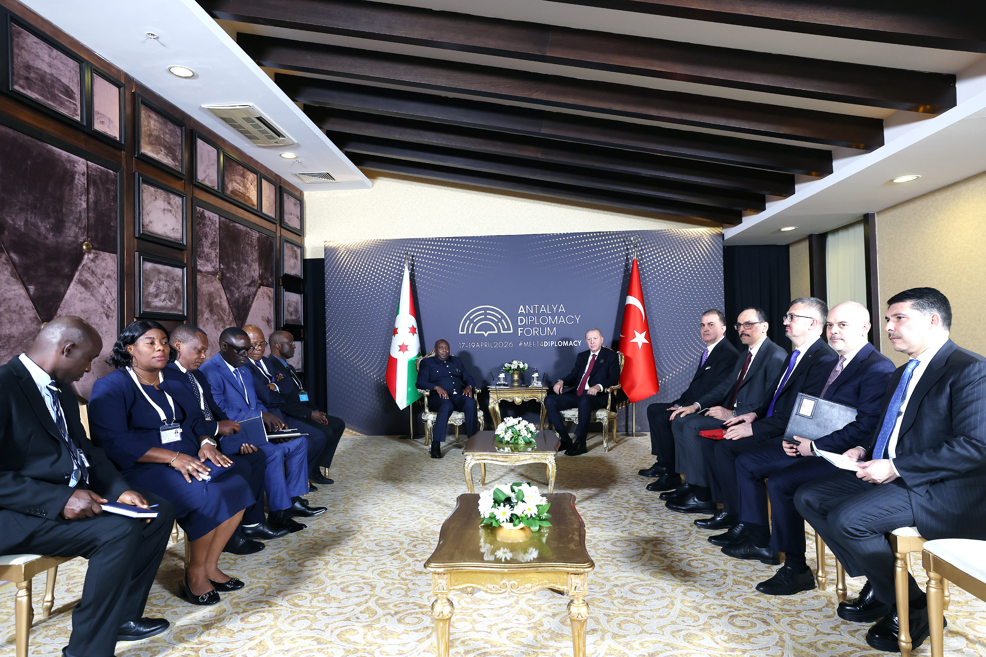 Cumhurbaşkanı Erdoğan, Anadolu Ajansının (AA) “Global İletişim Ortağı” olarak yer aldığı, Belek Turizm Bölgesi'ndeki NEST Kongre Merkezi'nde düzenlenen Antalya Diplomasi Forumu 2026'nın ikinci gününde Burundi Cumhurbaşkanı Ndayishimiye ile görüştü.