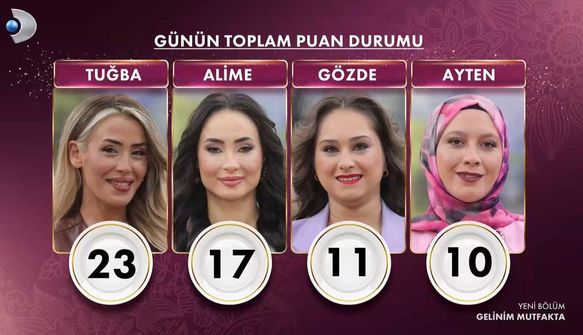 Haftanın ilk gününde Gelinim Mutfakta günün birincisi ve çeyrek altının sahibi Tuğba oldu.