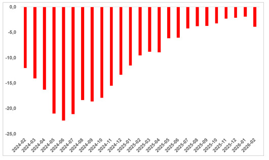 Şubat ayı bilgilerine nazaran gerçek konut fiyat endeksi bir evvelki aya nazaran yüzde 2,1 düşüş gösterdi. 2026 yılının Ocak ayında tekrar düşüşe geçen gerçek fiyatlardaki bu eğilim şubat ayında da devam etti