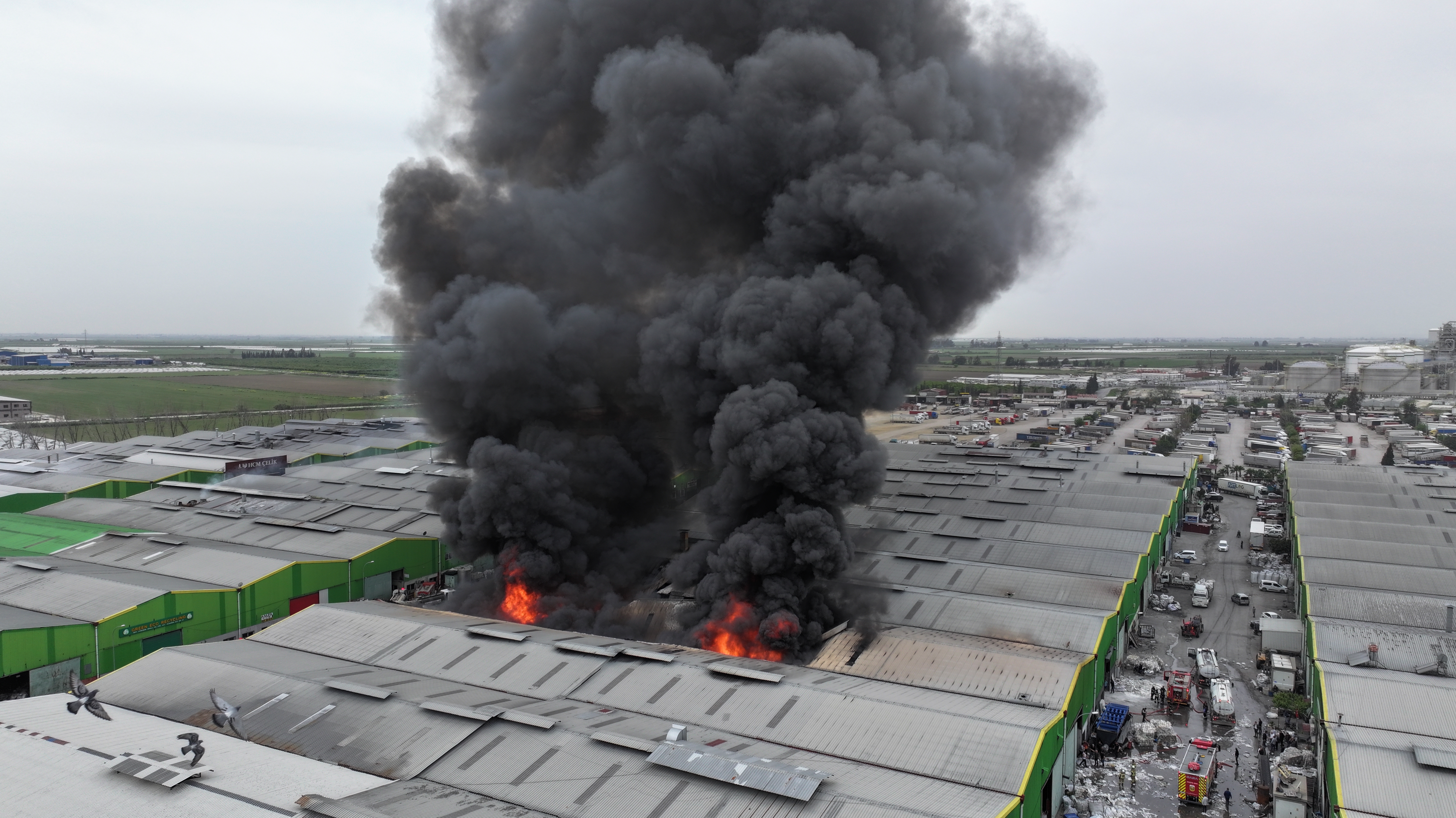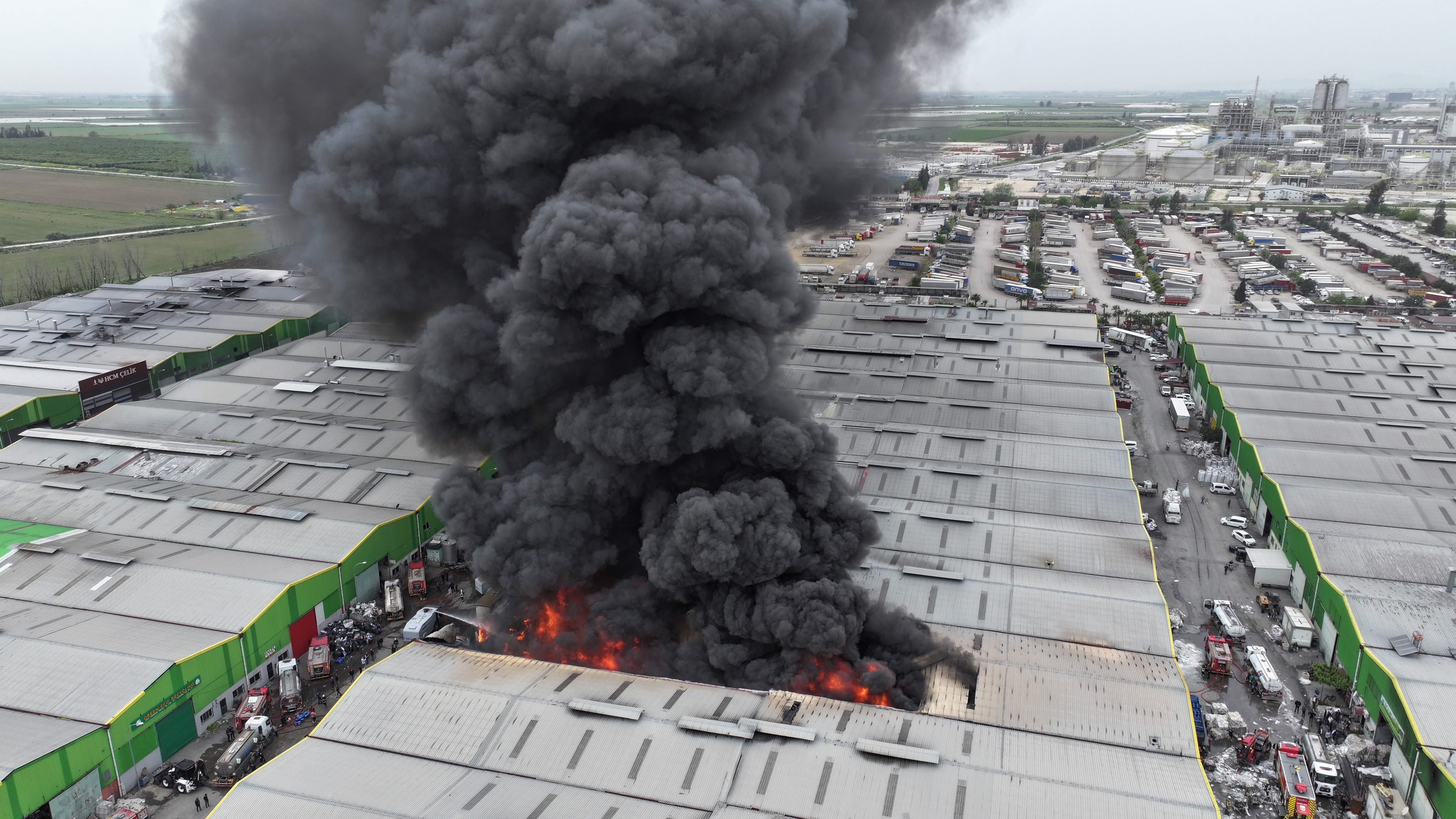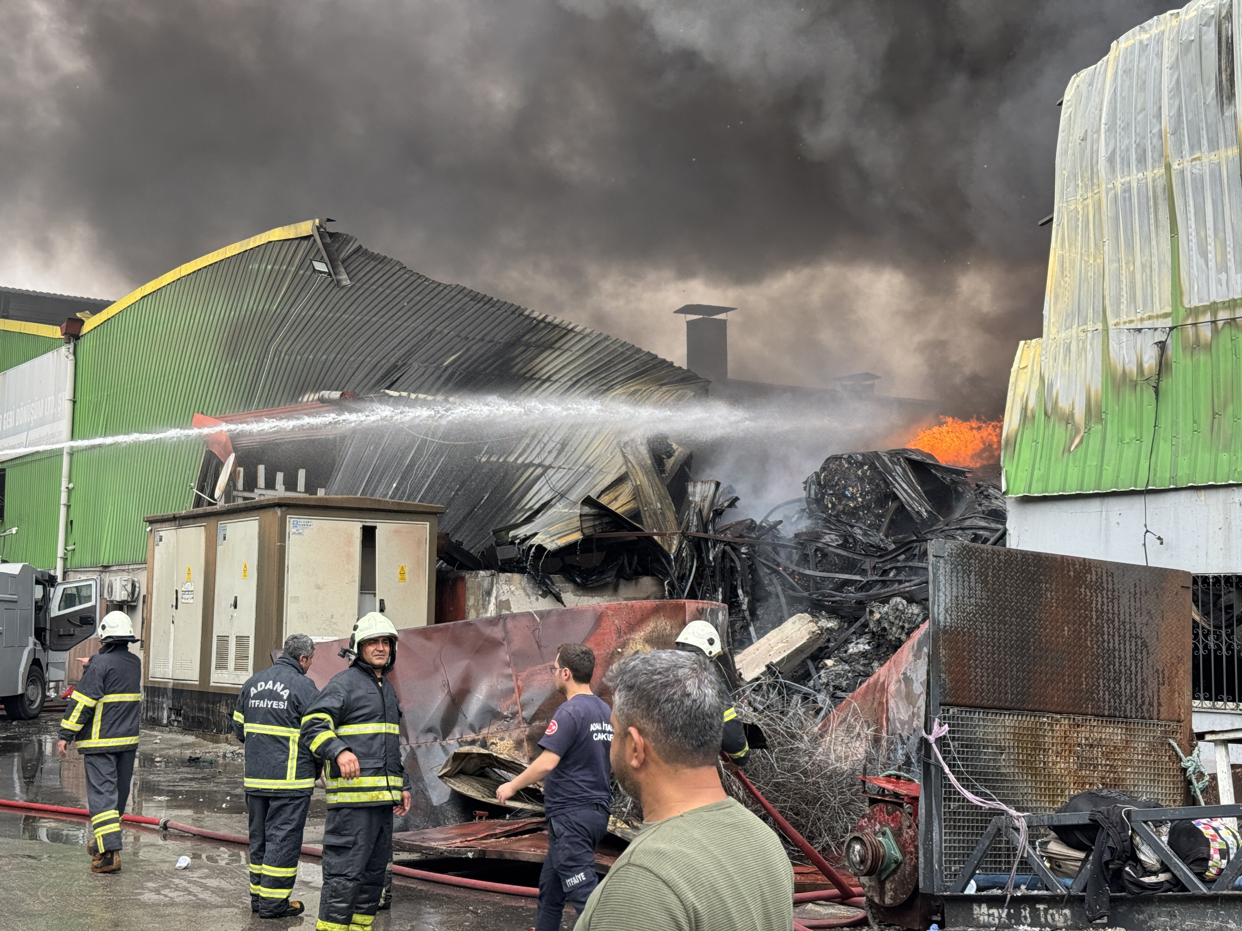 ADANA (AA) – Adana'nın merkez Seyhan ilçesinde geri dönüşüm tesisinde çıkan yangına müdahale ediliyor.