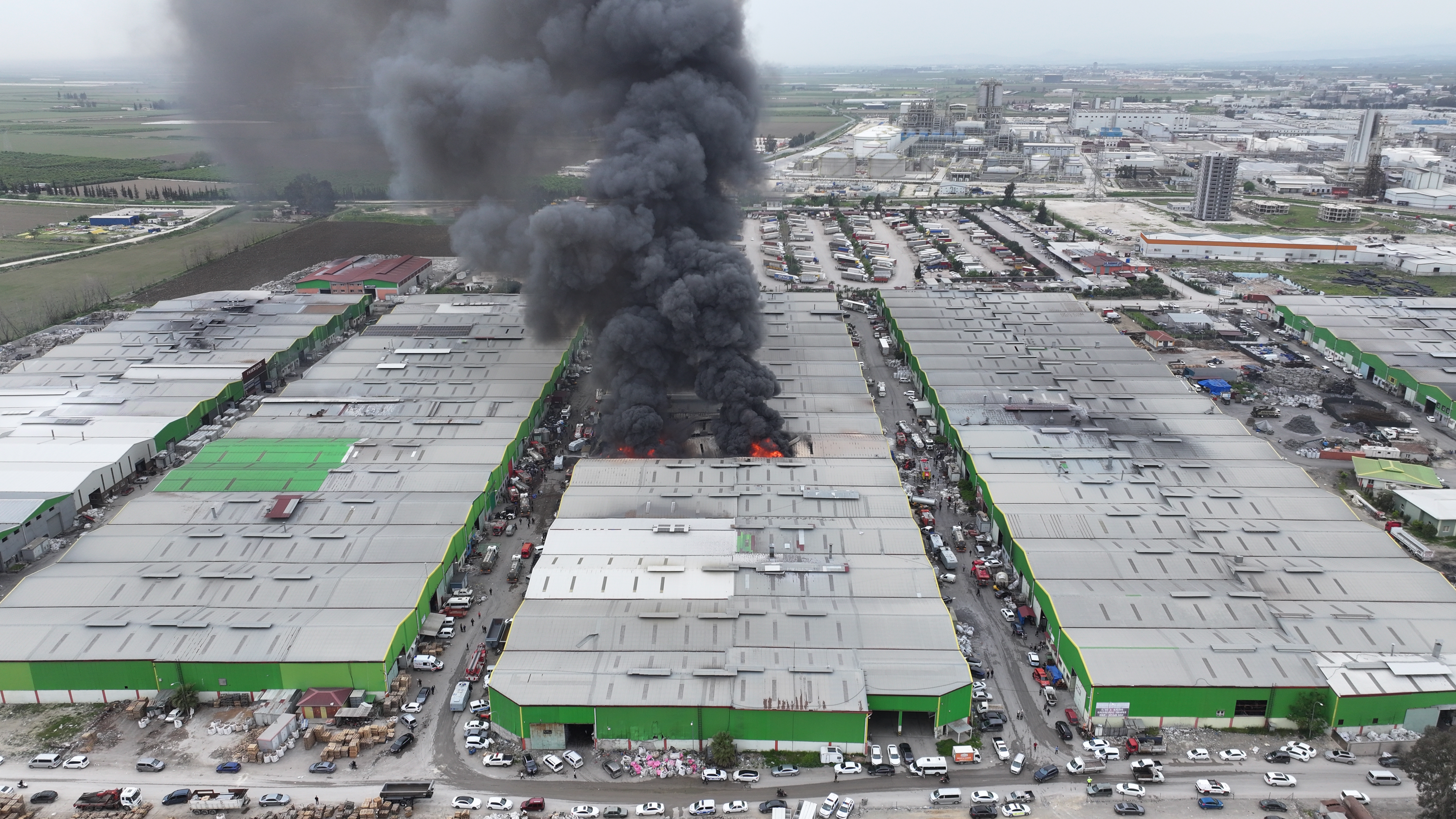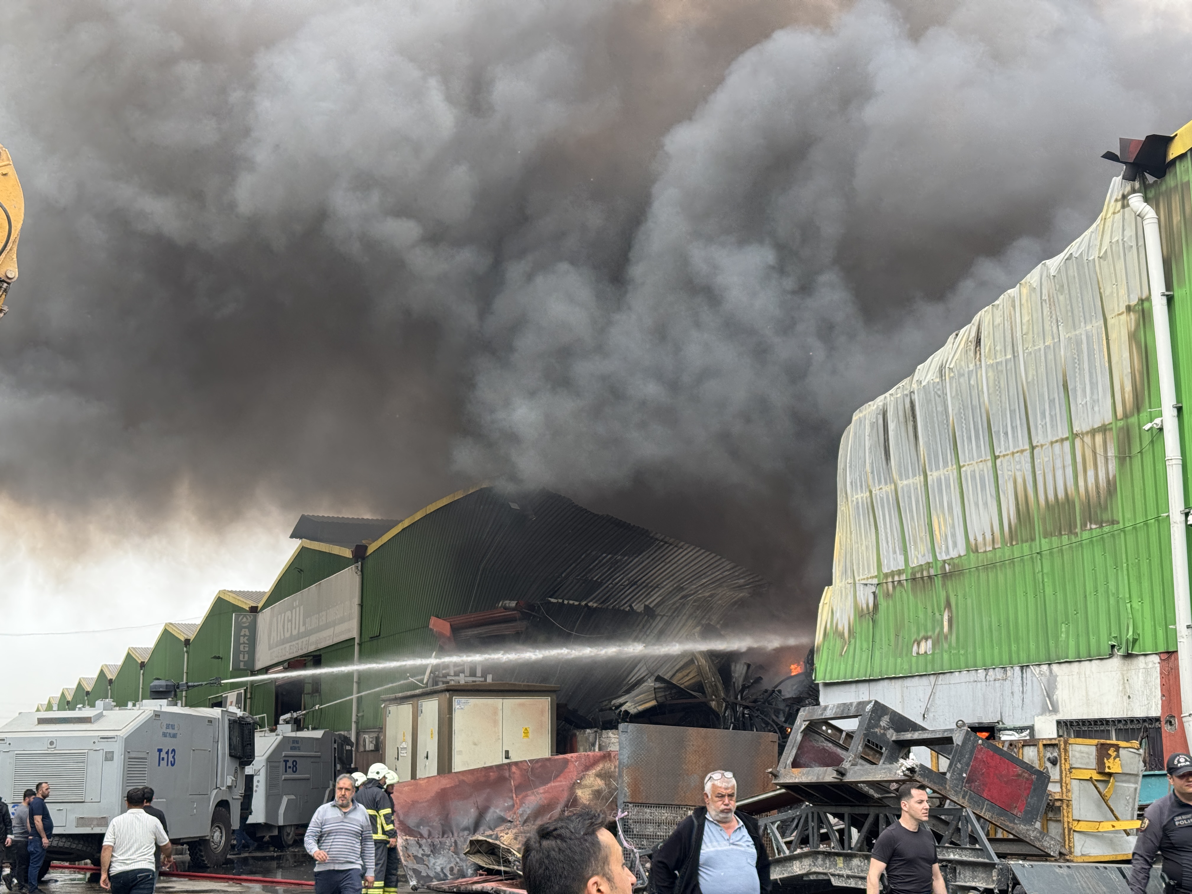 “Geri dönüşüm tesisimizin depo alanında, yani bu atıkların biriktirildiği ve işlendiği alanda yangının çıktığını arkadaşlarımız ifade ediyorlar. Zaten haberimiz olur olmaz hem itfaiye ekiplerimizi hem emniyetimize ait TOMA'larımızı hem diğer kurumlarımızdaki arazözlerimizi, iş makinelerimizi, personellerimizi hızlıca buraya sevk ettik. Arkadaşlar çalışmaya başladılar. Şu an itibarıyla yangının çıktığı ilk noktada, yani az önce inceleme yaptığımız alanda yangın devam ediyor. Yangın sağındaki ve solundaki yaklaşık 5 iş yerimize sirayet etti ama arkadaşlar hem arkadan hem yan taraflardan yangını çevrelediler.”