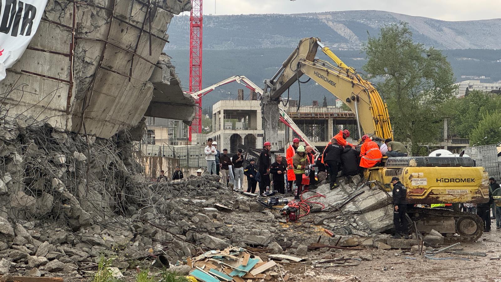 GÜNCELLEME – Kahramanmaraş’ta 5 katlı otoparkın yıkımı sırasında iş makinesi enkaz altında kaldı