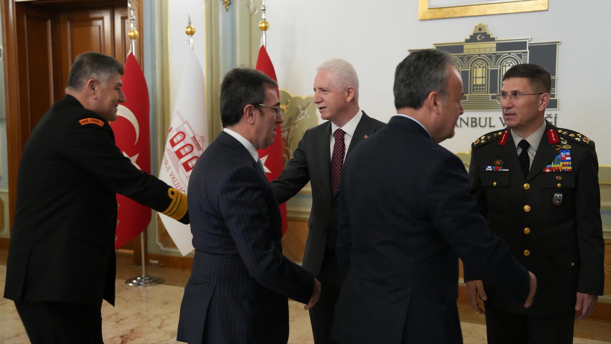 Valiliğin sosyal medya hesabından yapılan açıklamaya göre, Vali Davut Gül ile 1. Ordu ve İstanbul Garnizon Komutanı Orgeneral Bahtiyar Ersay ve İstanbul Büyükşehir Belediye (İBB) Başkan Vekili Nuri Aslan, protokol mensupları, kamu kurumlarının yönetici ve personeliyle bayramlaştı.