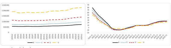 Şekil 2: Araç sınıfına nazaran ortalama araba fiyatı (TL) (Sol panel), araç sınıfına nazaran ortalama araba fiyatının yıllık değişimi (%) (Sağ panel)