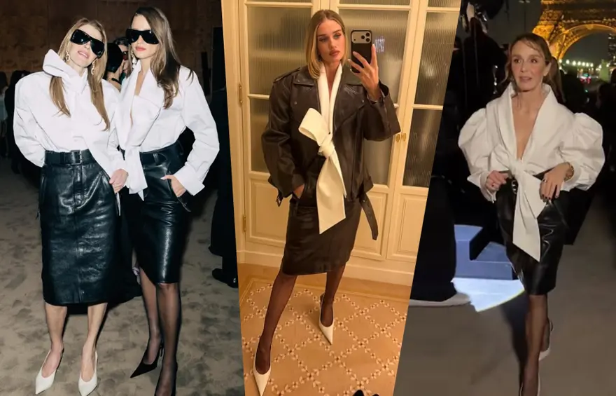 Ancak defileye konuk olan birçok ünlü isim, benzer bir kombin tercih etti. Sarıkaya, Anna Dello Russo, “Emily in Paris” dizisinin yıldızı Philippine Leroy Beaulieu ve dünyaca ünlü model Rosie Huntington-Whiteley pişti oldu.