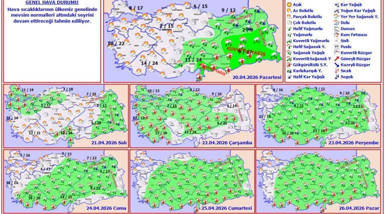 Değerlendirmelere göre, ülke genelinde hafta boyunca aralıklı yağışların görüleceğini belirten Özdemirci, hafta başında yağışların özellikle doğu kesimlerde etkili olacağını söyledi.