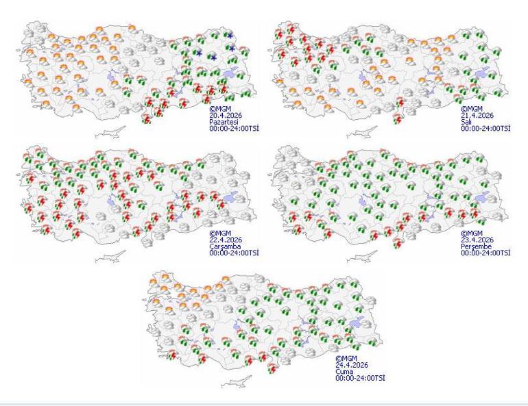 İzmir’de ise pazartesi ve salı parçalı bulutlu havanın etkili olacağını belirten Özdemirci, çarşamba günü ise gök gürültülü sağanak görüleceğini, kentte en yüksek sıcaklığının hafta boyunca 22 ila 24 derece arasında olmasının beklendiğini kaydetti.