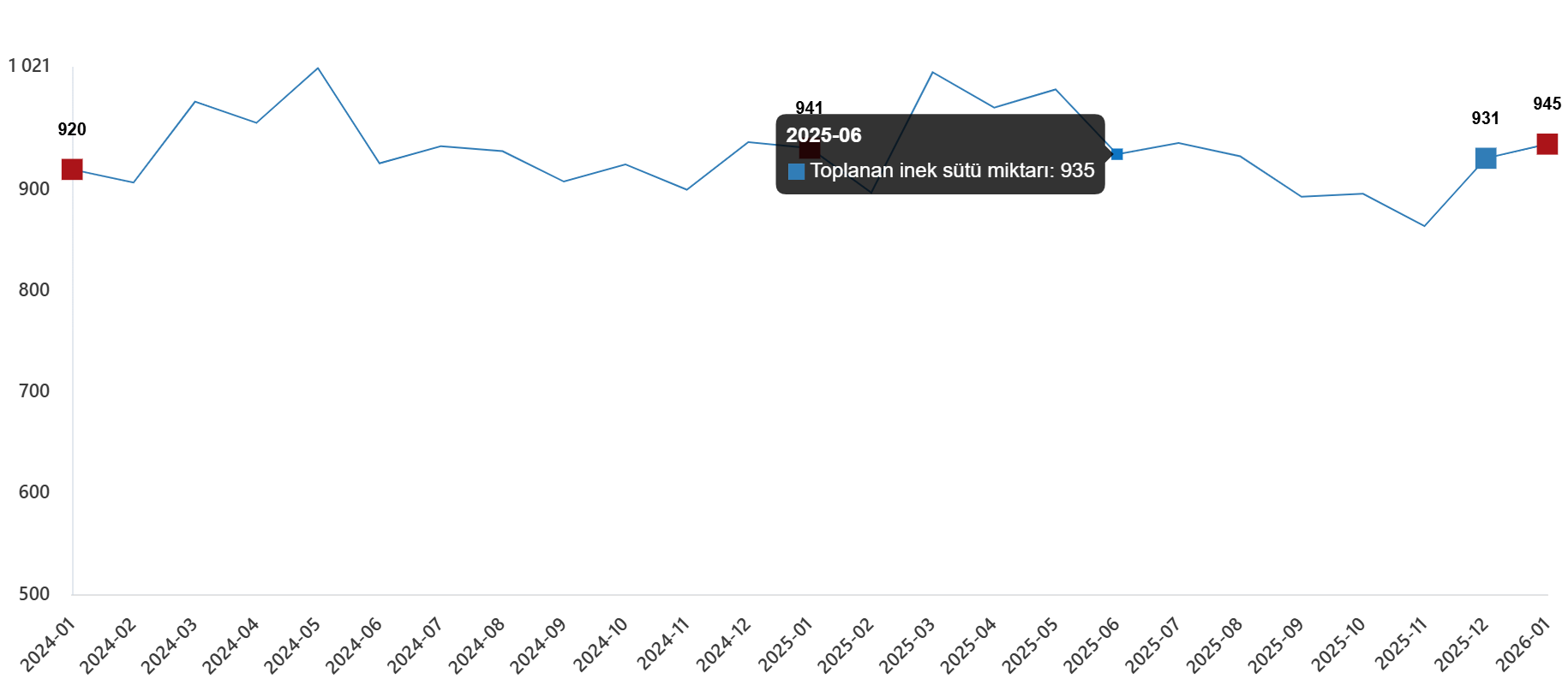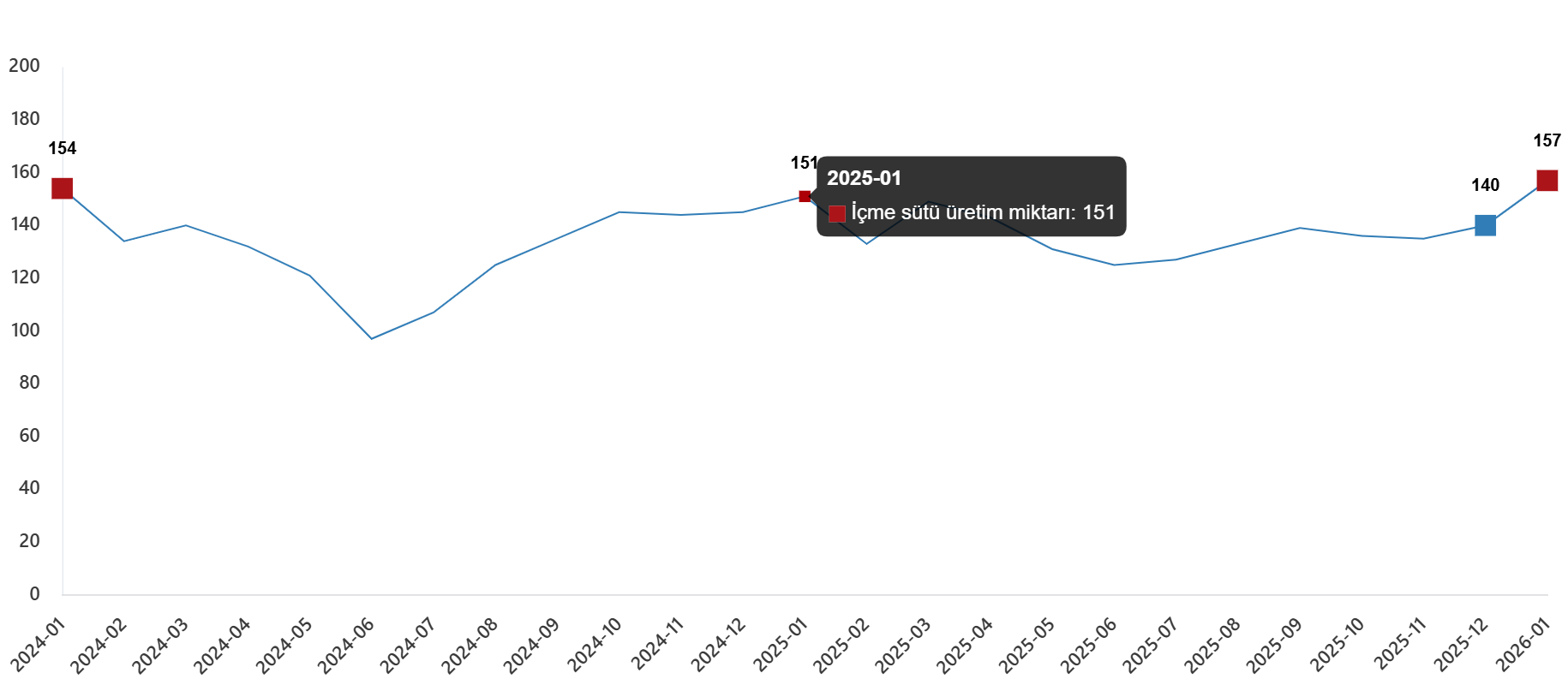 İçme sütü üretim ölçüsü, Ocak 2026
