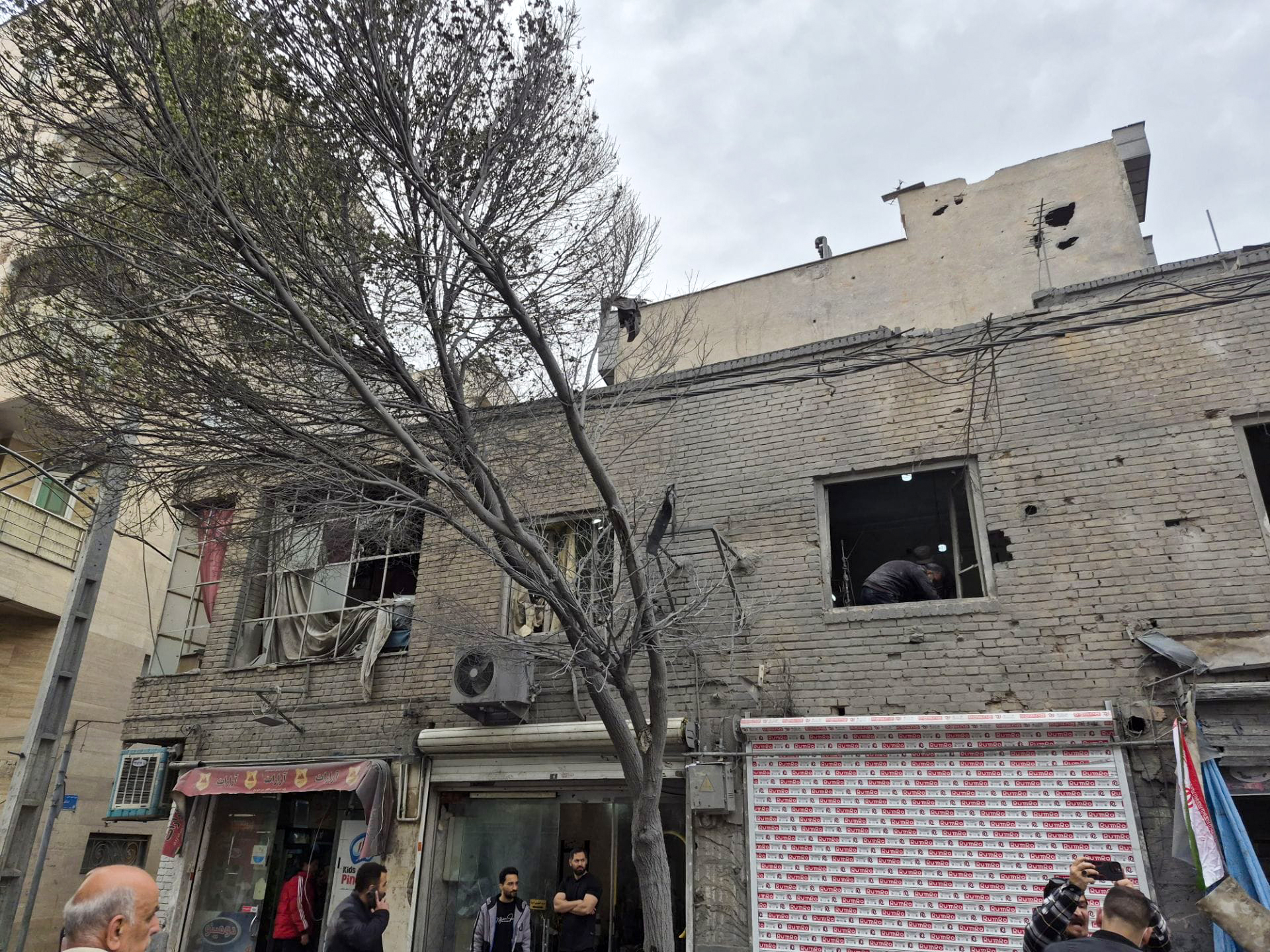 Bölgede bulunan ve evleri hasar gören İranlılar, ABD ve İsrail aleyhine sloganlar atarak eşyaları tahliye çalışmalarını sürdürüyor.