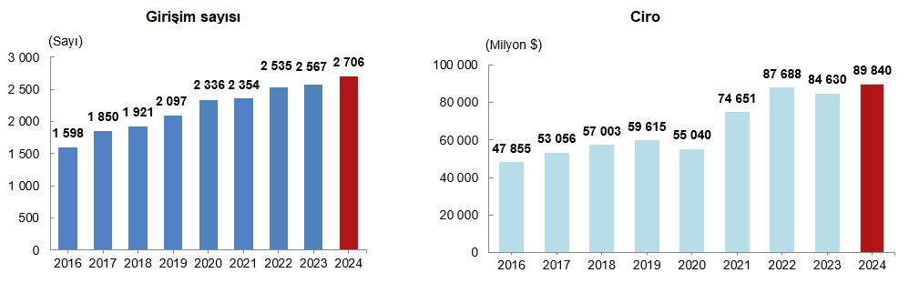 Yurt dışında denetim edilen teşebbüslerin elde ettiği ciro 2024 yılında 89 milyar 840 milyon dolar oldu